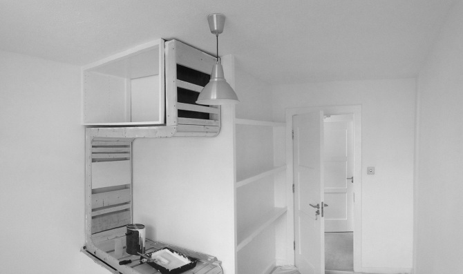 The frame was constructed using standard softwood sections & a discarded wardrobe carcass.