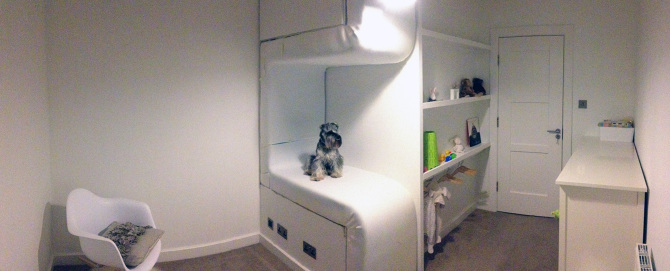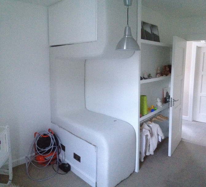 The fabric was applied and reading lights fitted.